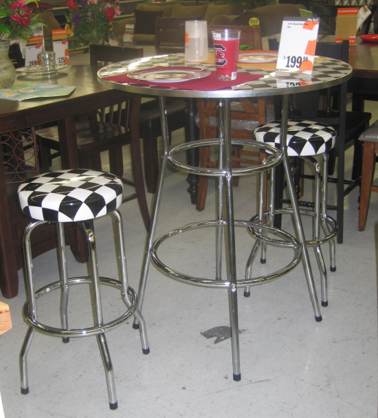 It looks like my boyfriend has made his decision on the kitchen's theme. Funny, I'm the one who chose the theme to begin with and he originally said no. *smirks* He's definitely doing black and white checkers. In fact, we now have a bar table for the kitchen to prove it. It's... different. I'm not sure how it will tie in with the rest of the house but ya know what? - If he's happy with it, then I'm happy with it.